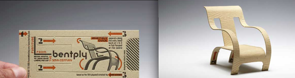 1. Londra modernist mobilya mağazası Bentply’un kartvizitleri modernist bir sandalyeye dönüşüyor.